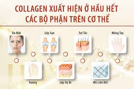 Làm đẹp da: Collagen giúp da săn chắc, đàn hồi, chống lão hóa và duy trì độ ẩm. Collagen cũng giúp làm trắng da, giảm thâm nám tàn nhang, phục hồi da, cấp nước và bảo vệ khỏi ánh nắng mặt trời. Collagen có thể bổ sung cho da từ bên trong bằng cách ăn uống hoặc từ bên ngoài bằng cách sử dụng các sản phẩm chăm sóc da chứa collagen hoặc các thành phần kích thích sản xuất collagen.